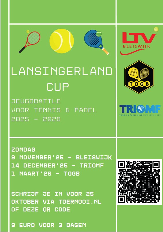 Neem jij de cup van deze allereerste editie mee naar huis? In samenwerking met LTC Triomf en LTV Bleiswijk organiseren we dit jaar een supergezellig jeugdtoernooi voor tennis & padel: De Lansingerland Cup! Inschrijven kan nu.