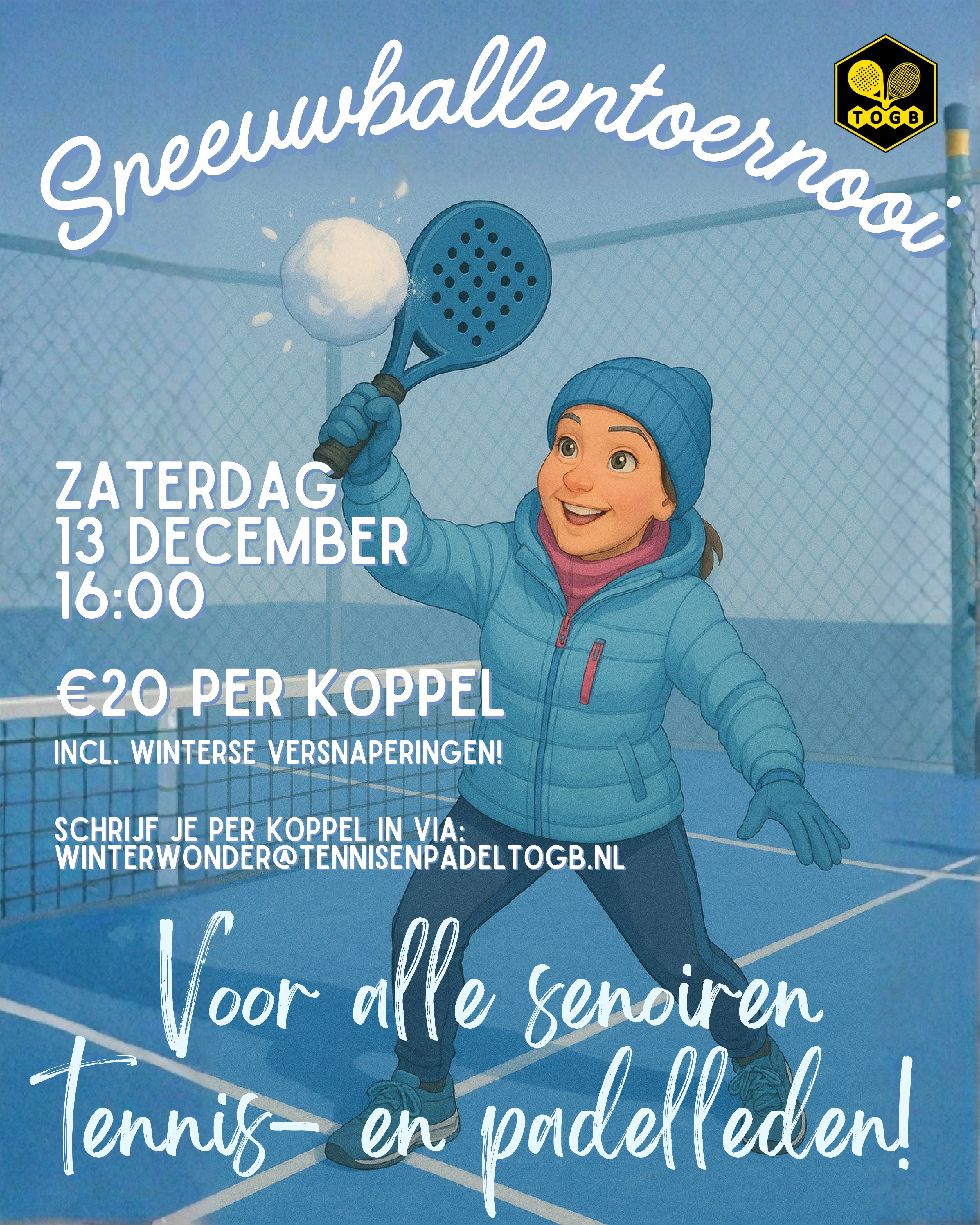 ✉️ Aanmelden: Schrijf je per koppel in via winterwonder@tennisenpadeltogb.nl